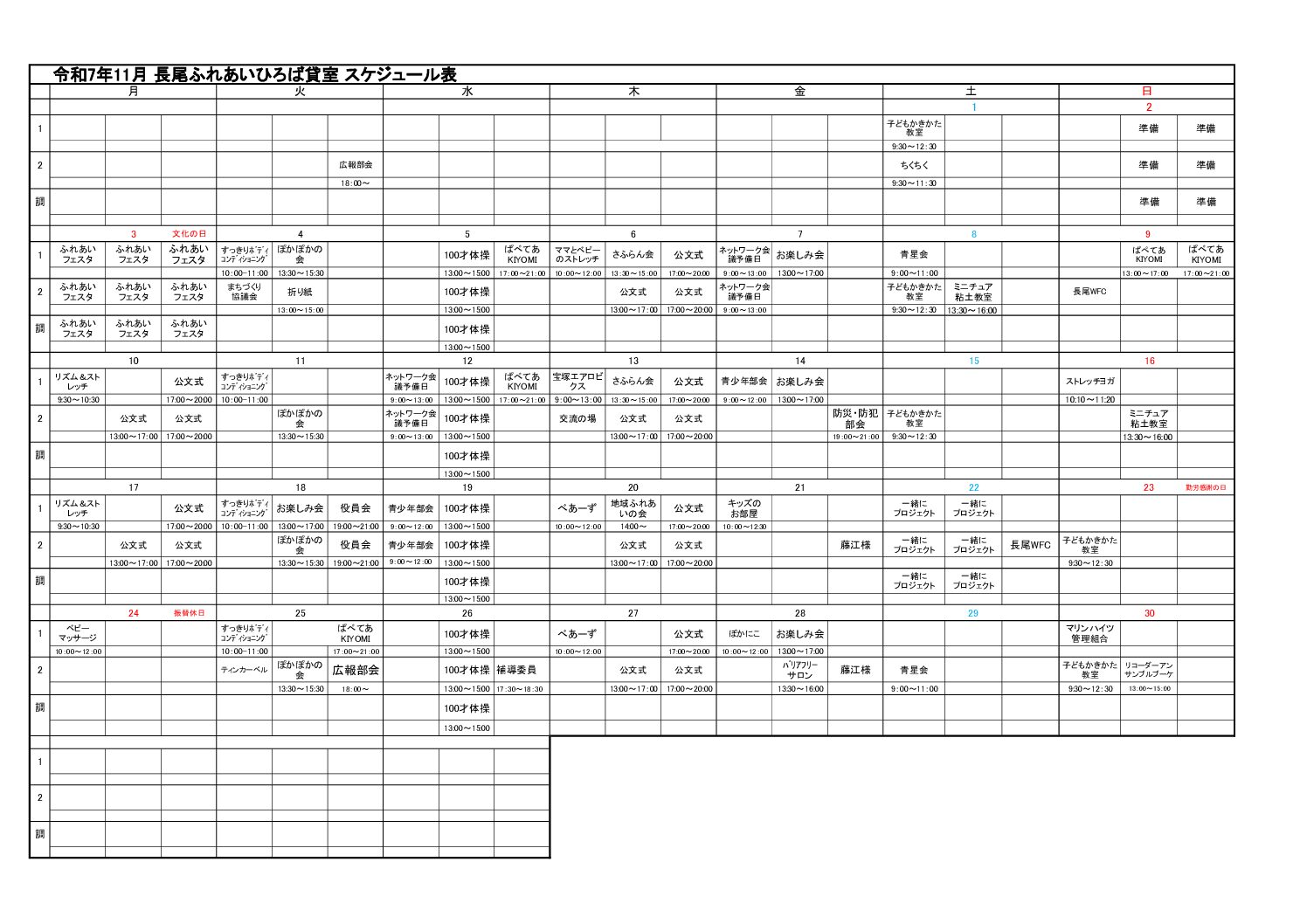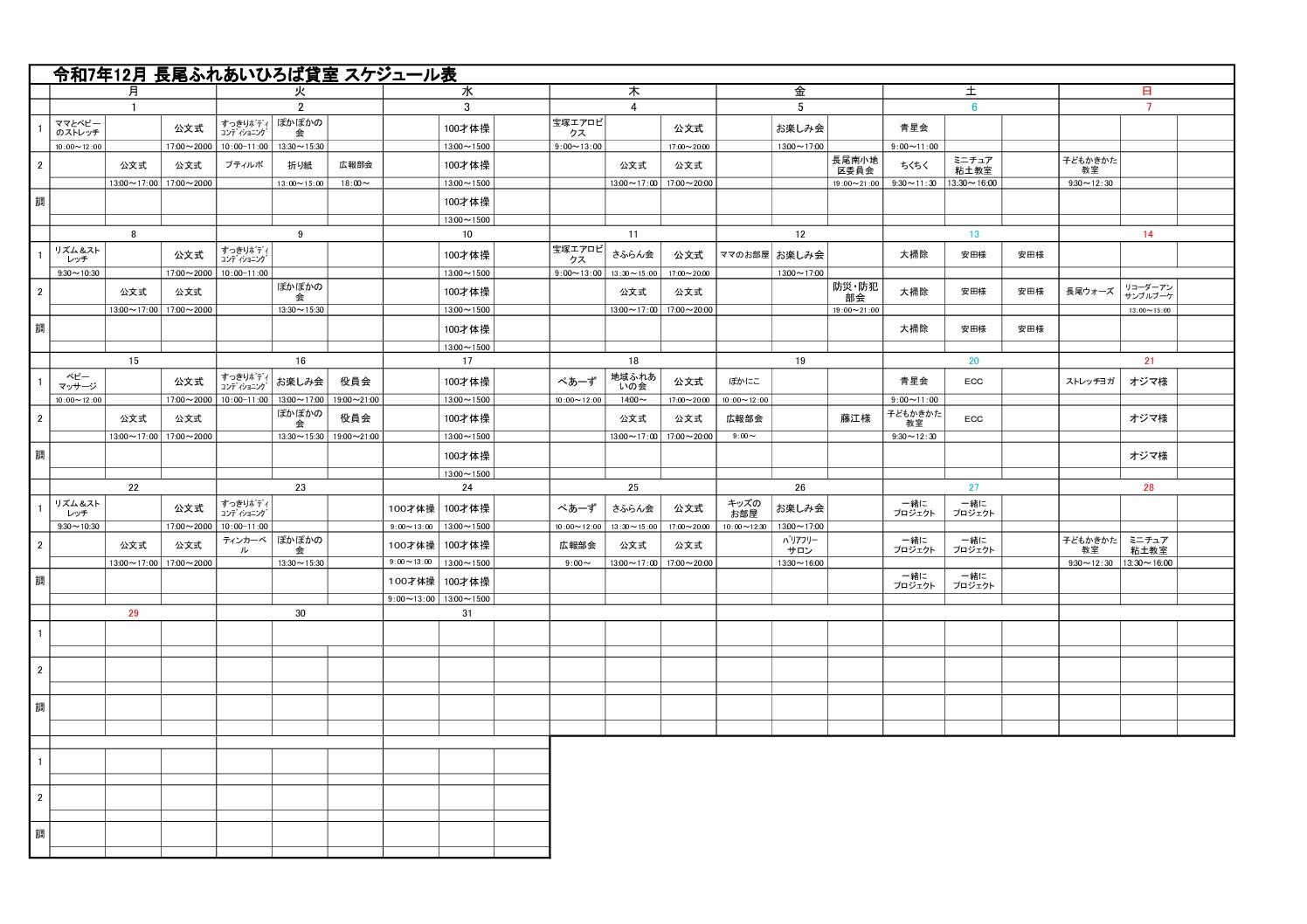 • 長尾ふれあい広場(令和7年12月度)の貸室利用状況です 2025.11.27