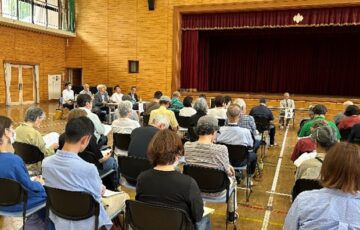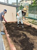 宝塚市長 中川智子様からのサプライズで、ラジオ体操20周年を記念して、宝塚市木であるヤマボウシがコミュニティ室前の花壇に植樹されました。市長と、長年ラジオ体操を開催されてきた「ラジオ体操の会・仁川」代表の石澤さん、去年から引き継いで実施されている川島さん、仁川小学校の荻野校長先生、まち協の綿会長で植樹しました。