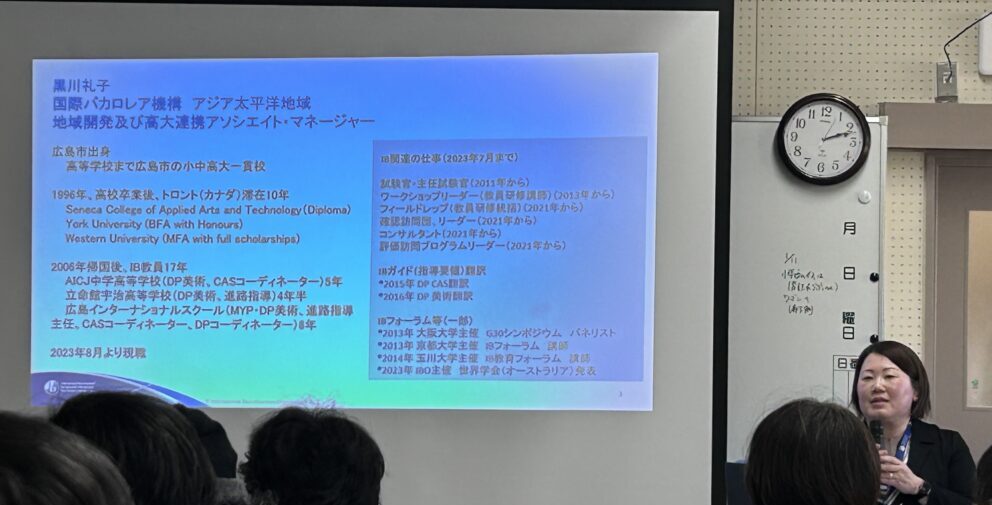 今回は、市長だけでなく国際バカロレア機構の黒川礼子先生もお越しいただき、IBについて分かりやすく教えていただきました。