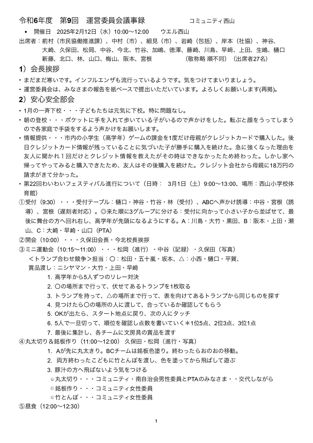 令和7年2月12日(水)令和6年度第9回運営委員会が開催されました。 GIJIROKU20250212