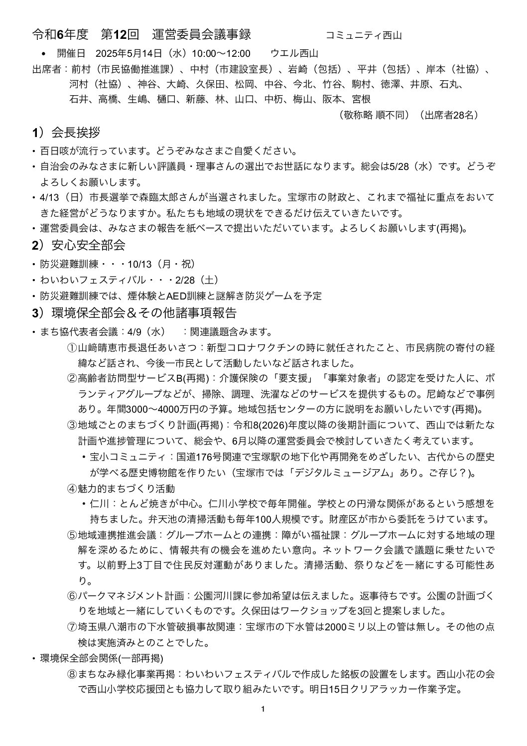令和7年5月11日(水)令和6年度第12回運営委員会が開催されました。 GIJIROKU20250514