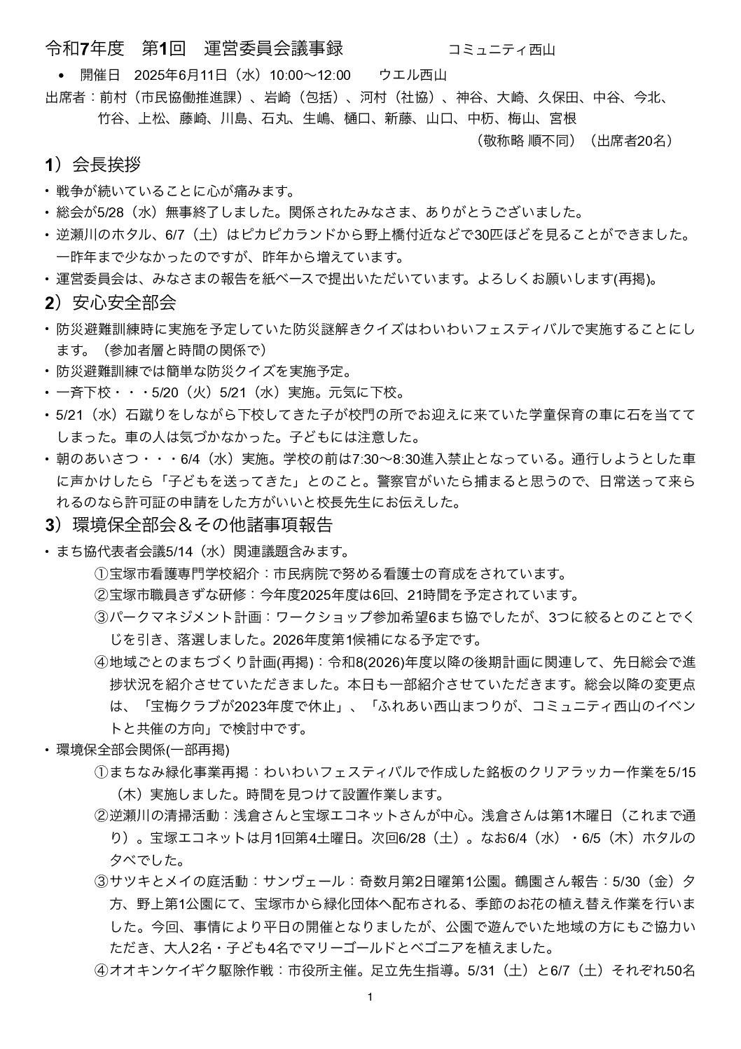 令和7年6月11日(水)令和7年度第1回運営委員会が開催されました。 GIJIROKU20250611