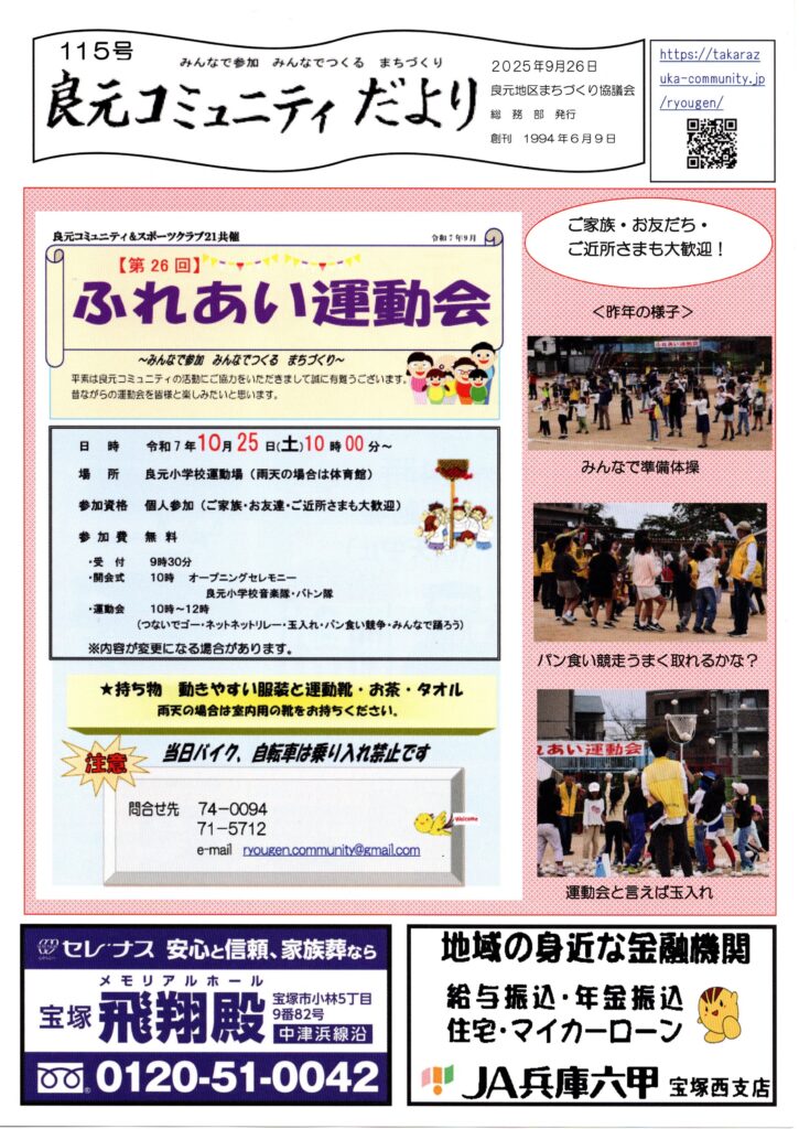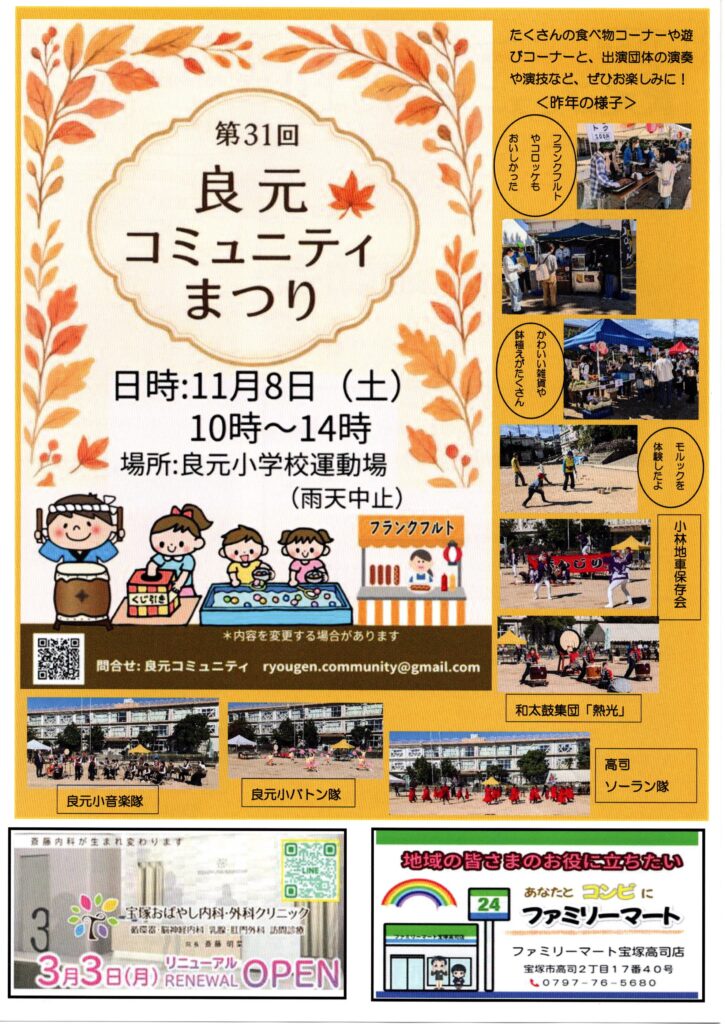 10月にはふれあい運動会、11月には良元コミュニティまつりがあります。