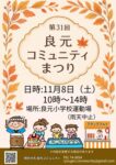 2025.11.09 全体 このページを印刷 良元コミュニティ 第31回良元コミュニティまつりのお礼 青空がきれいな秋晴れでの開催となりました。 たくさんの来場者でにぎわい、出演団体の演奏や演技もまつりを盛り上げてくれました。 ご参加いただいた方々、そしてご理解、ご協力いただいた皆様方に、感謝とお礼を申し上げます。 第31回良元コミュニティまつりのお礼