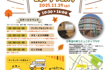 希望の家コミュニティプラザが、早くも開設2周年だそうです。 コミプラフェスタ(2nd Anniversary)が開催されます。 今回も、多世代が楽しめそうな盛りだくさんの内容ですよ。 【日時】2025年11月29日(日)…