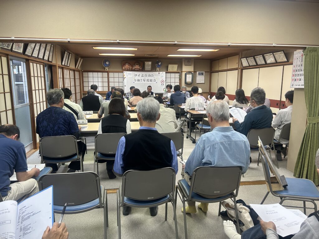 2025.04.20 自治会・地域だより このページを印刷 コミュニティ末広 伊孑志自治会総会開催 4月19日夜、伊孑志自治会定例総会を開催しました。 定則数36のうち出席34(委任状無し)で無事に成立し、令和7年度の活動がスタートしました。