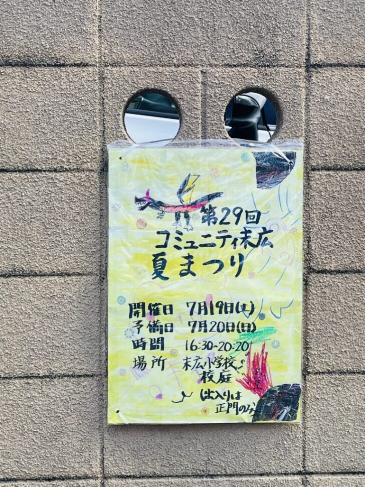 2025.07.16 よちよち広場 このページを印刷 コミュニティ末広 【よちよち広場】19日(土)はコミュニティ末広夏まつり❣️ 6月のよちよち広場で、 夏まつりポスターを作ろう!!と題して クレヨンでお絵かきしてくれました🖍️ 絵の具で塗って完成!! 🌻コミュニティ末広夏まつり🌻 19日(土) 16:30〜20:20 末広小学校校庭🏫 子育て支援部も福祉健康部さんと一緒に ゲームコーナーで出店します❣️ 今のところお天気は晴れ☀️! 遊びに来てね🐥🌈
