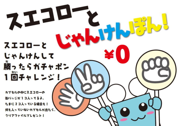 7月19日(土)「第29回 コミュニティ末広 夏まつり」に、広報部が昨年同様、スエコローブースを出店します。昨年は「スタンプラリーで、ガチャを回してスエコロー缶バッジをゲット!」でしたが、今年はゲームを2つ用意しました。是非、挑戦してみてくださいね?