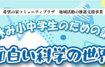 希望の家コミュニティプラザさんからお知らせいただいた企画ですが、いよいよ来週に迫ってきました。申し込み期限は過ぎていますが、事前申し込みなしでも参加できるそうですよ。見逃していた人はラッキーですね。対象は小中学生ですが、…