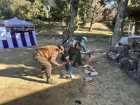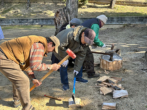 2026.01.10 イベント このページを印刷 コミュニティ末広 お餅つきに向けて 本日、3月4日に予定しているお餅つきで使用するための薪を用意するため、薪割り作業を伊和志津神社でやりました。 この木は樫の木らしく、とても固くなかなか大変な作業でした^ ^ ; 2人がかりでやっとです。 これだけあれば数年は大丈夫だと思います。 たぶん…。