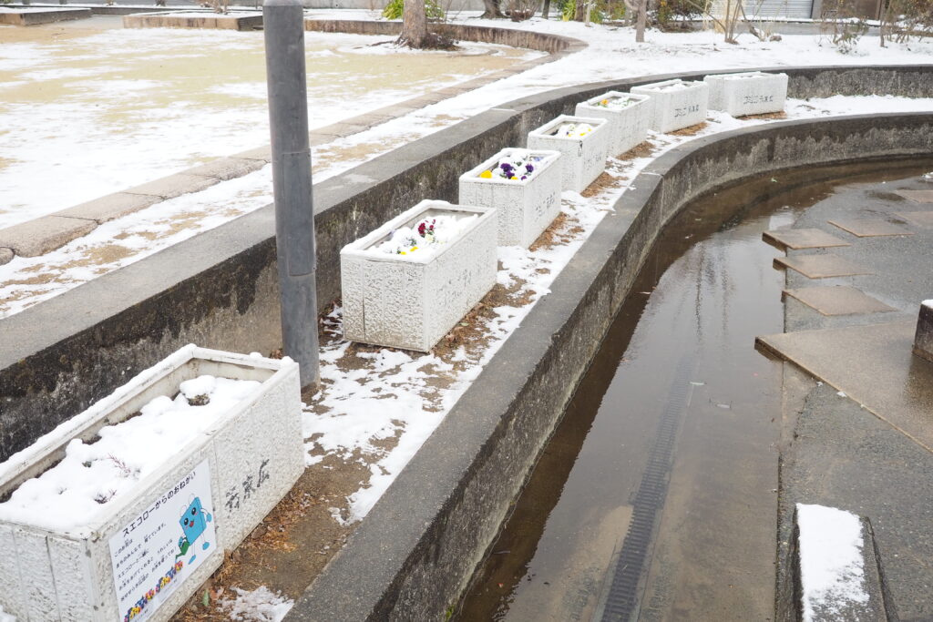本日、宝塚市内でも珍しく雪が降り、コミュニティ末広地域内でもうっすらと雪が積もっています。