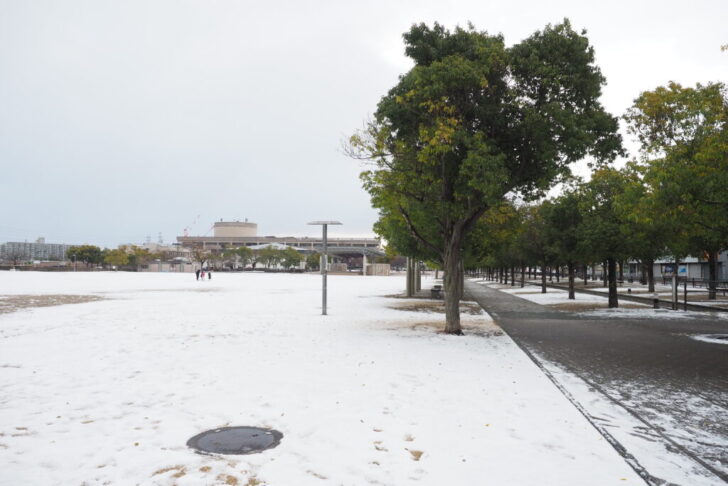朝の時点で、公園や歩道、日陰の場所などでは、すでに足元が滑りやすくなっている状況が見られました。