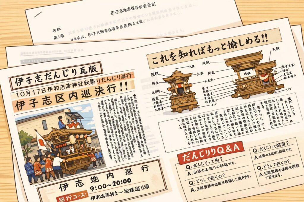 2026.02.22 自治会・地域だより このページを印刷 コミュニティ末広 伊孑志だんじり保存会 2026年2月21日(土)14時~ 伊孑志会館で「伊孑志地車(だんじり)保存会」の会合がありました。 (仮)の資料もあるため、↑あえて文字化け。笑 4月18日(土)午後に総会を開催するとのことです。来年度以降の活動に注目ですね。^ ^