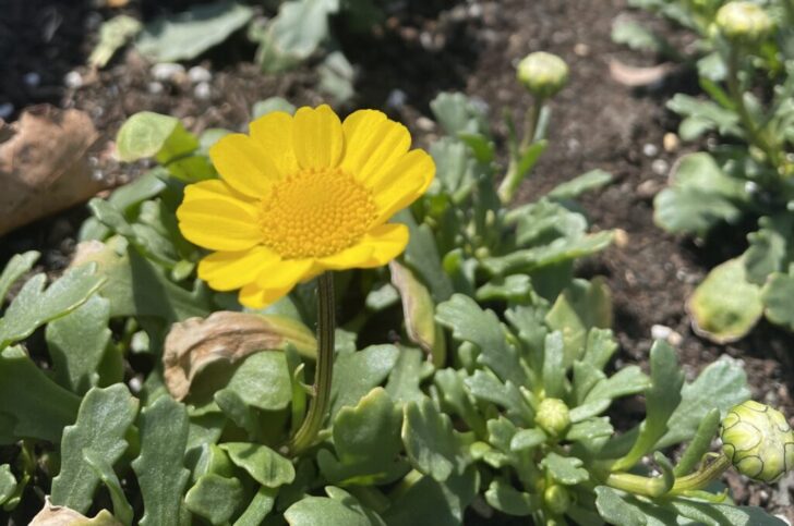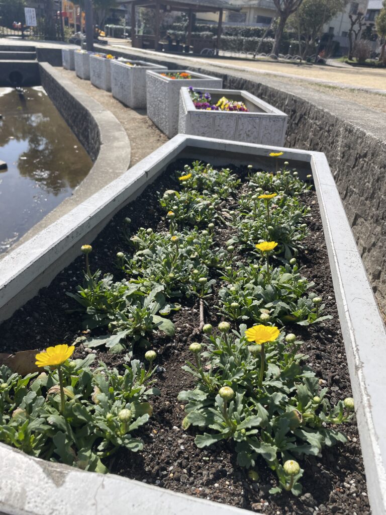 せせらぎ広場のプランターですが、ムルチコーレ(だったかな?笑 キク科の耐寒性1年草)が鮮やかな小さい花を咲かせ始めました。まだまだたくさん咲きそうです。次はシバザクラが楽しみです。^ ^