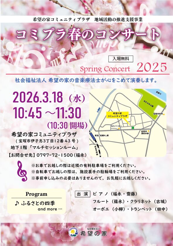 希望の家 コミュニティプラザで、素敵なコンサートがあります。