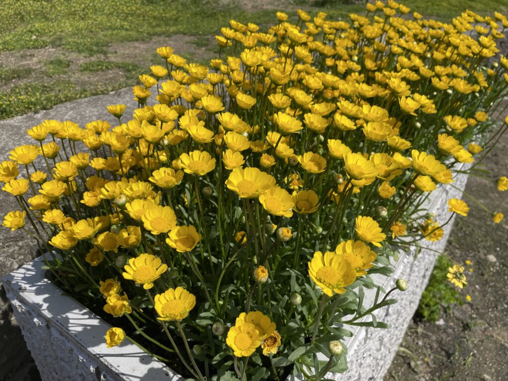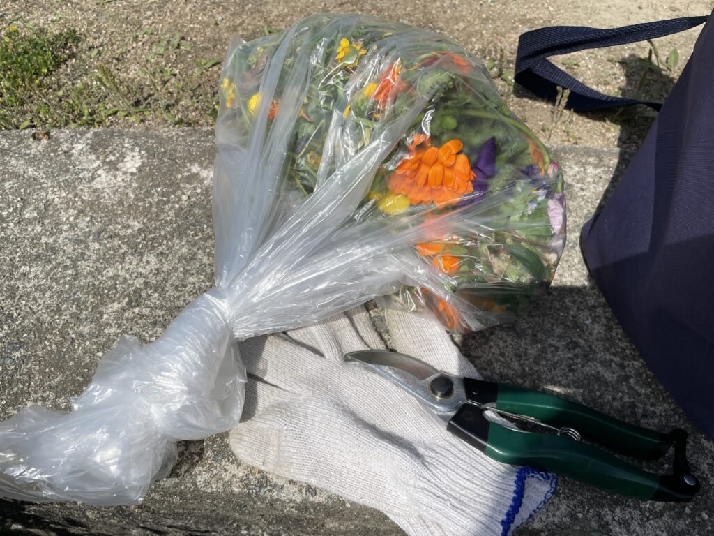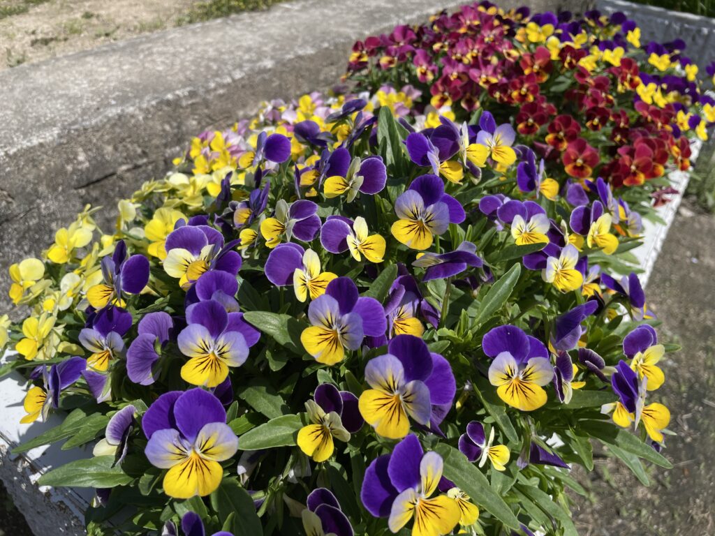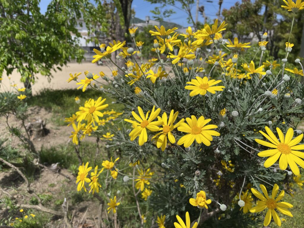 2026.04.26 第二部会 このページを印刷 コミュニティ末広 花がら摘み 今朝は、伊孑志せせらぎ広場でプランターにもりもり咲いているお花の「花がら摘み」をしてきました。やりかたが合っているのかどうかわからないけど、Youtubeで調べた見よう見まねです。 もともと公園にあった低木にも花が咲きました。先週は咲いていなかったのに。^ ^