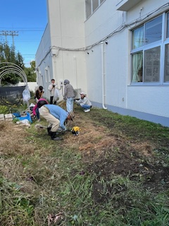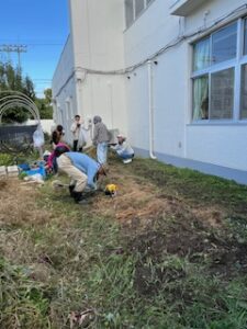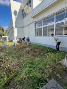今日もいい天気だぁぁぁぁぁ🌞( ̄▽ ̄;)💦 4カ月もの間ネットで覆われた高司児童館。10月に再開してみりゃ裏の畑は草ボーボー(-“-;A …アセアセ(>_<)/(^o^)\ナンテコッタイ 状態でして、館長が「いやはやどうにもこうにも手が付けられなくて・・・💦」てなことなので、「草刈りしちゃる👍」と、皆さんに連絡を流したところ6名の草刈りまっさ~OH!が集合してくれました。
