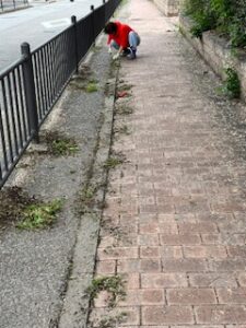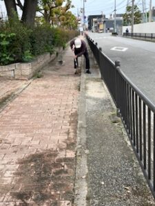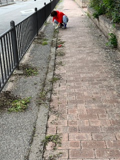 とそこへ「出来ることあるかなぁ。手伝うわ」って竹〇おっきいお兄さんが来てくれました👐  アイテム2の🧹を手渡して「掃き活」していただきました。ちっさい🌼だかがいっぱい落ちてて雨に打たれて地面に貼りついとりましたが、丁寧に掃いてくれていました(´;ω;`)ウッありがと