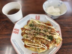 今日の給食は「お好み焼き2種:豚🐽&エビイカ🦐🦑」持ち逃げ予定のりえちゃんだったがちゃんとお手伝いしてくれました(*^-^*)v