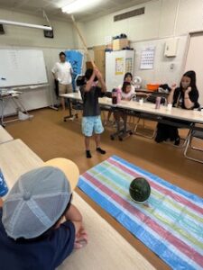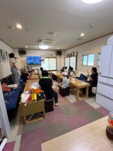 夕食後は坂本のあやちゃんちのじっちゃんが作ってくれた🍉2個の差し入れを使って「スイカ割」ひとり振り上げ1刀体験。ポコポコ当たるもなかなか芯を捉えなくて何人か挑戦。1個目はひび割れて🍉ジュースが溢れた。2個目もそこそこ無事だったんだけど最後に浅井の兄ちゃんがパコン✨と打ち込んでスイカが飛び散った💦😅Σ(゚Д゚;≡;゚д゚)