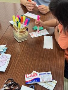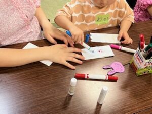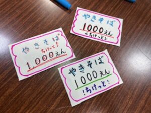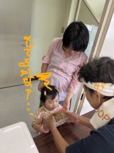 かなちゃんが〈ごっこチケット〉を作ってくれてました。『お嬢ちゃん、お手伝いでいっしょにきたの?賢いね。はいこれママの分も持ってってね。』『・・・持てるかなぁ(◎_◎;)』ってWakaちゃんの心の声が聞こえてきた。『大丈夫!持てる!』やる気スイッチはOnだ。