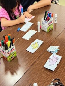 今日も予定通り暑かった😅💦(・・;) 2学期が始まって早々でまるっと2か月ぶりの【月組🌙オスカル様でした👸。今月は3組ヒッソリでした。余裕のよっちゃんで給食の焼きそばもチャチャッとできた。簡単工作は「ひっくり返って飛びます飛びます!」のパッチン🐸を作ってくれました。