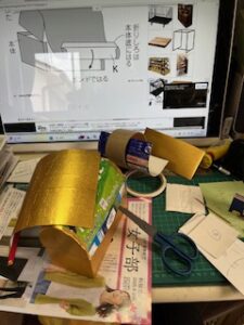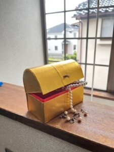 何層も貼り合わせて蓋部分はカチカチだよ。金ぴか宝石箱みたいだからちょっと飾ってみました🥰