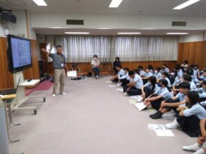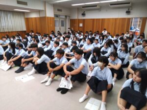 『9月26日(金)令和7年度高司中学校3年生防災講習を4F多目的室で実施。
