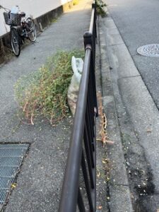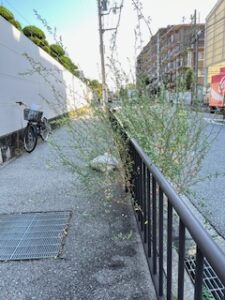 1時間くらい掃き活して帰り道・・・ずっと気になっていた歩道にずかずかと伸びきっている🌳が邪魔じゃま。剪定用の✂でカットカットしときました。