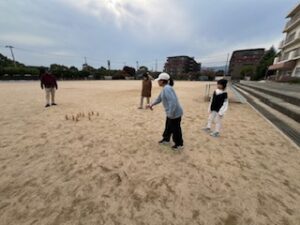 最近インフルエンザが大流行しとるようで、部屋活動と野外で分けてみた。育成会のメンバーがそのまま運動場に参加してくれました。モルックとキックベースを用意してあとは遊具で遊びたいお子たちの自由遊び。育成会の指導員さんも来て下さって大助かり🥰👍。