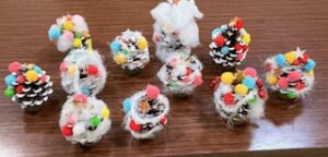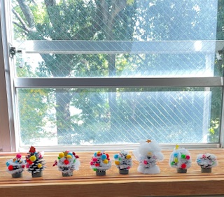 12月はどこ行っても🎄🎅一色になる。えっちゃん&スーちゃんがお部屋も飾ってくれました🔔。松ぼっくりツリーをママと一緒に作ってもらいました。お手々サイズだな。