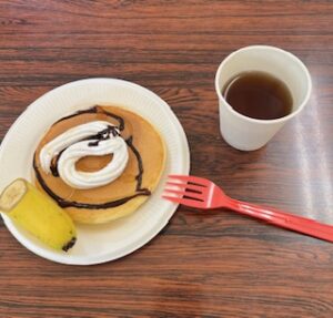 お片付けも上手にできていましたぁぁ(かしこ😜) 台所では給食用のホットケーキをたくさん焼きました。最近の子はシロップとか甘いやつあまりつけないんだ(-_-;) 糖質気にしてんのかい?んなわけね~か(>_<) 気にせなあかんこちらはてんこ盛りホイップ&チョコソースかけ賭けで頂きました。やっぱりマイウ~やし。