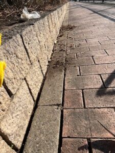 今しとくべき掃き活は…土を出来るだけ残さない歩道ブロックの溝のコケコッコもこまめに剥がしておく。残すとコケコッコは広がる癖があるから(-_-;) しっかり掃ききって土ごと垣根にポイポイ👍お返し。