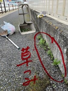 ■3時ごろ中学校の体育館側歩道の草がず~~~~っと気になってたから今日中に退治しとくことにした。