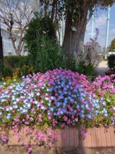 で、ふれあい花壇も春の花が綺麗に咲いとります綺麗に植え付けご苦労様でした°˖✧◝(⁰▿⁰)◜✧˖°