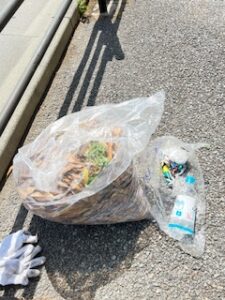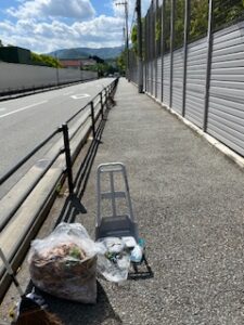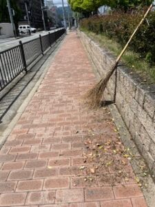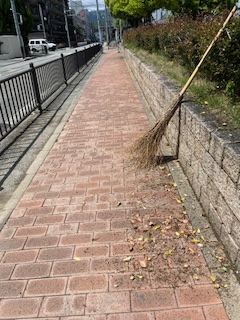 ■南歩道路にワープ。縁石にびっちり🍂がこびりついている( 一一)おい! だ~~~~っと掃き活1本🧹))) 今日は掃き方を工夫しながらだ。でもルナ行き歩道路は思の他散らかりも無く静かにシャシャっと掃きのみ。でも…この前坊主にした「すうも」が再び勢い付けてきた。