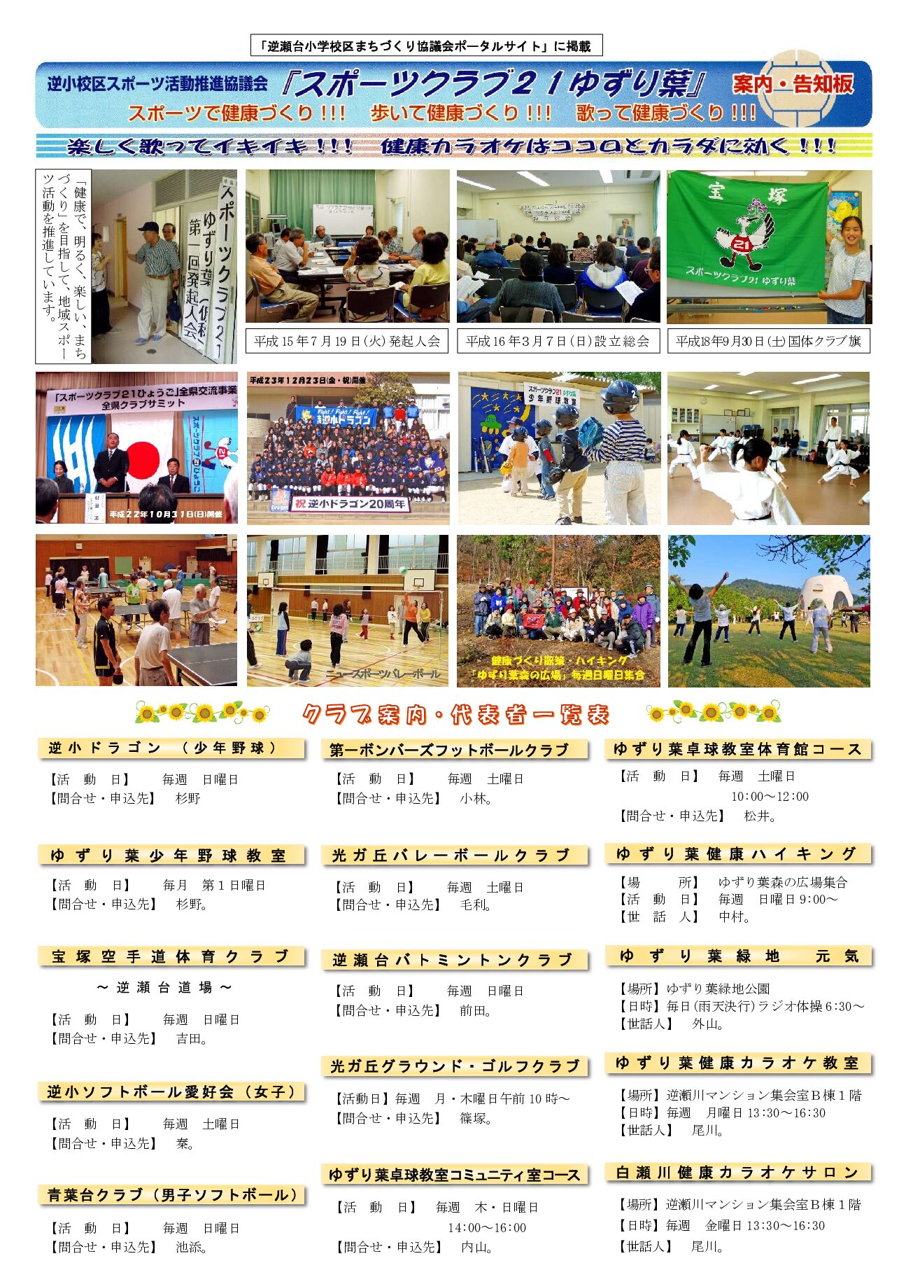 「スポーツクラブ21ゆずり葉」案内・告知版です